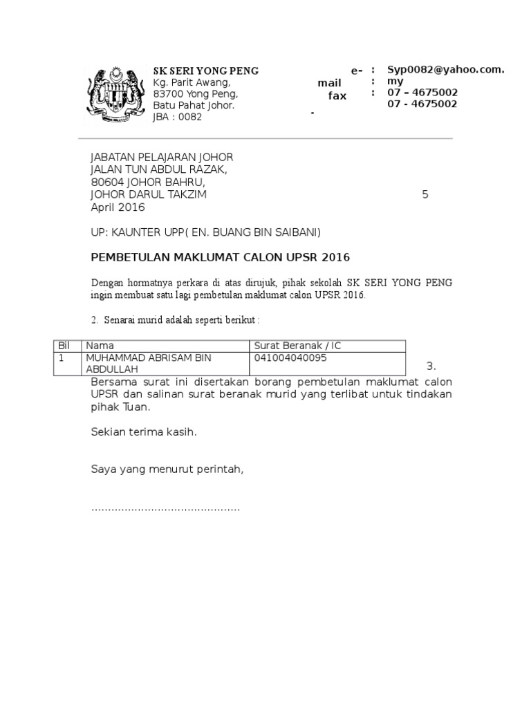 By adminon june 15, 2020 298 views. 7 contoh surat izin sekolah kerja dll serta cara membuatnya. Sebagai contoh, apabila urusannya mencakup pengadilan, maka suratnya harus rinci menjelaskan tentang apa saja yang akan terjadi di dalam pengadilan. Download contoh proposal pengajuan izin operasional majelis taklim yang didalam peraturan menteri agama nomor 29 tahun 2019 tentang majelis taklim disebut dengan skt (surat keterangan terdaftar). Dengan contoh surat lamaran kerja yang tepat akan memudah kamu dalam membuatnnya. No prog par abs nama siswa pembetulan data puspendik pembetulan keterangan. Contoh surat pengunduran diri dari organisasi bem (badan eksekutif mahasiswa) 5. For more information and source, see on this link : Biasanya surat ini dilengkapi dengan materai sebagai penguat kepercayaan dan agar terlihat kredibel. Rayuan pembetulan maklumat dalam e borang e filing. Contoh surat resign perangkat desa Yang bertandatangan di bawah ini: Pembetulan maklumat calon upsr 2016 final.