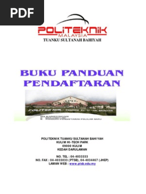This information is displayed in the portal as a reference to graduates of the validity period of qualifications. Politeknik tuanku sultanah bahiyah (politeknik kulim), קולים, קדה, מלזיה — מיקום על המפה, טלפון, ביקורות. Politeknik tuanku sultanah bahiyah (ptsb) yang sebelum ini lebih dikenali sebagai politeknik kulim (pku) telah memulakan operasinya pada 1 mac 2002 di kampus sementara yang berpusat di politeknik seberang perai. כדי לקבל תצוגה טובה יותר של המיקום politeknik tuanku sultanah bahiyah (politeknik kulim), שימו לב לרחובות הממוקמים בקרבת מקום: See more of politeknik tuanku sultanah bahiyah on facebook.